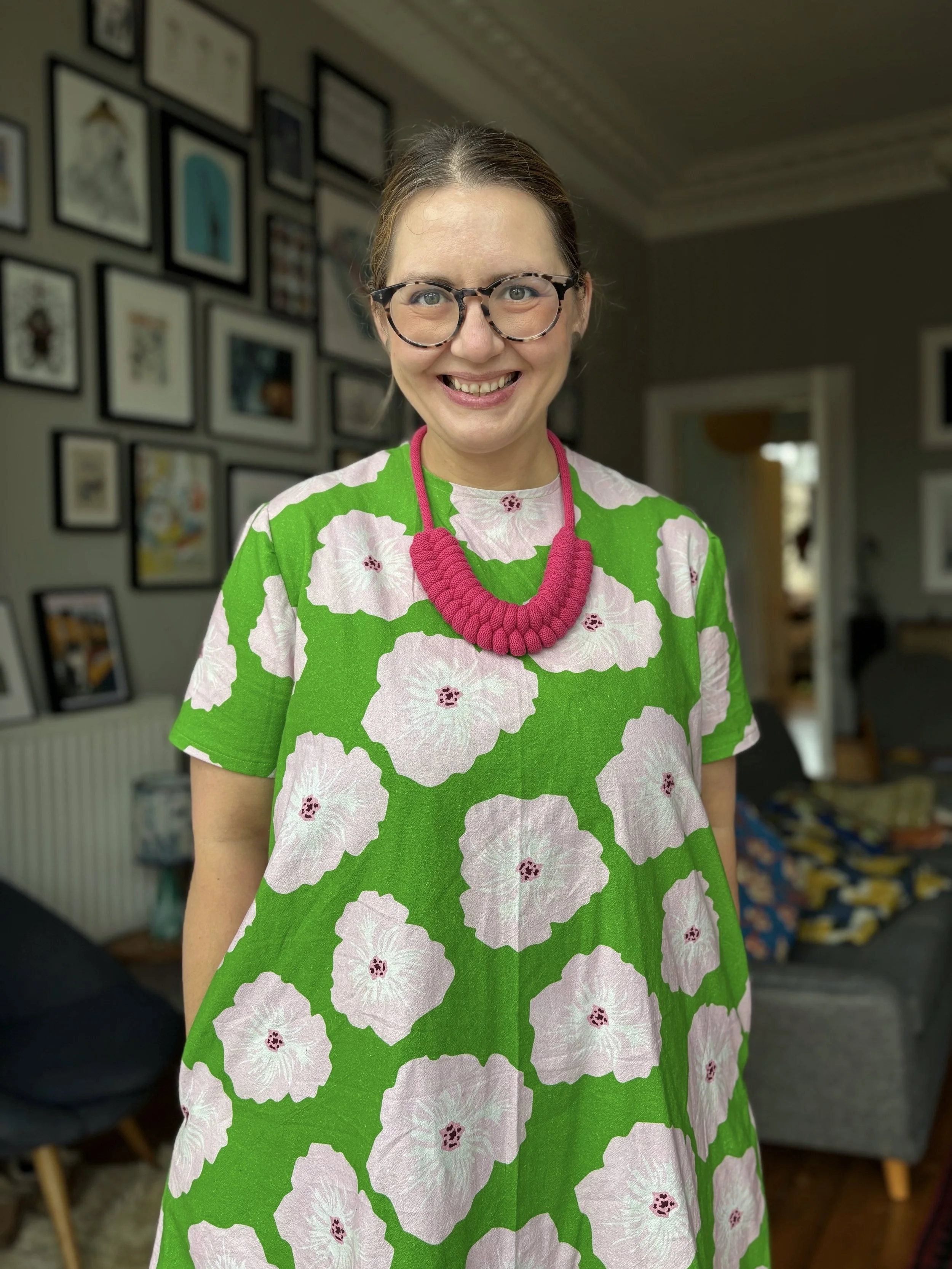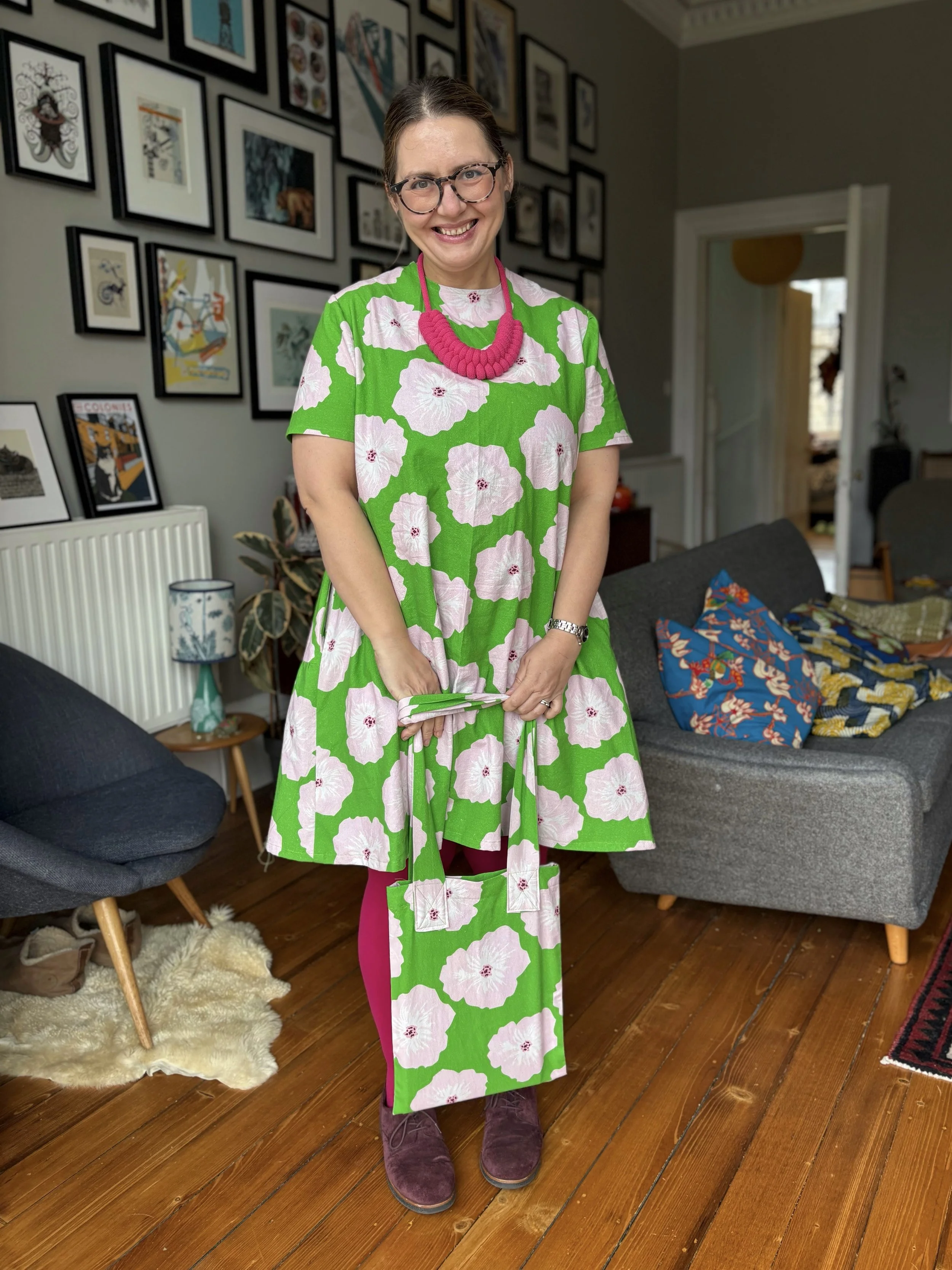 The print is from the Keechii B collaboration, it's called floral fiesta. I am always here for a bit of bright green, but the pale pink is a departure for me, I don't own anything in this colour at all. I actually found this quite hard to style for winter (I was picturing it bare legs and sandals when I ordered it), I've gone with fuchsia pink, which I think works pretty well!